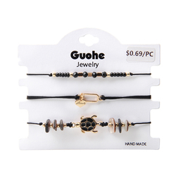 3個セットボヘミアンスタイル黒クリスタルビーズブレスレットハート型天然石調節可能特徴エレガントなタートルアクセサリー