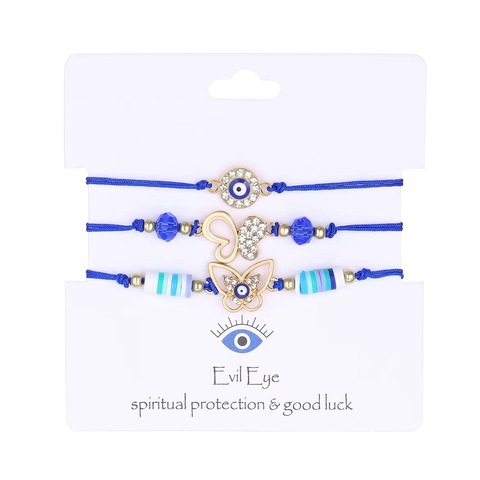 طقم من 3 أساور على شكل فراشة عين الشيطان سلسلة حبل يد حظ للأزواج مجوهرات صداقة معدنية مع زخارف زهور كريستالية يدوية